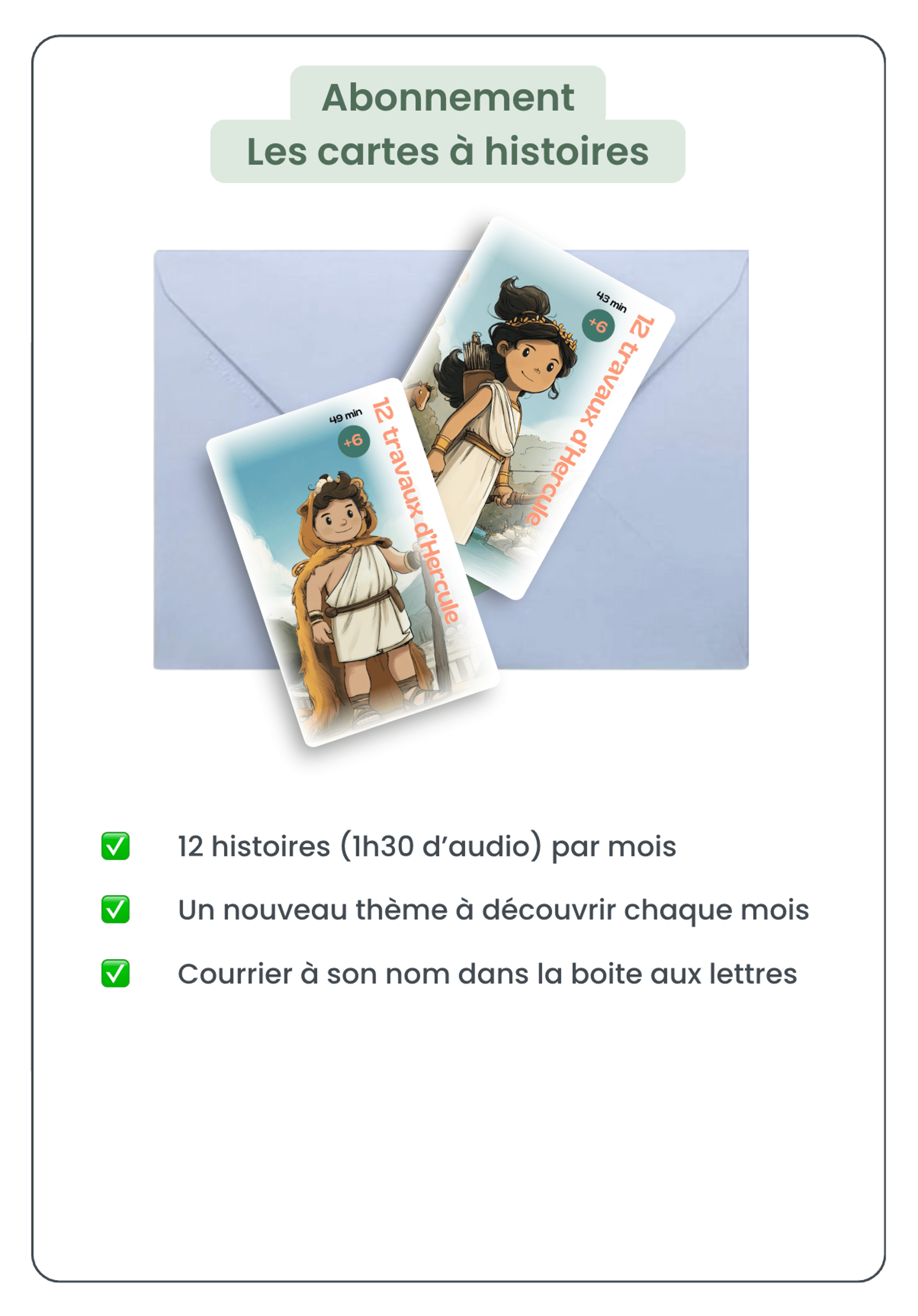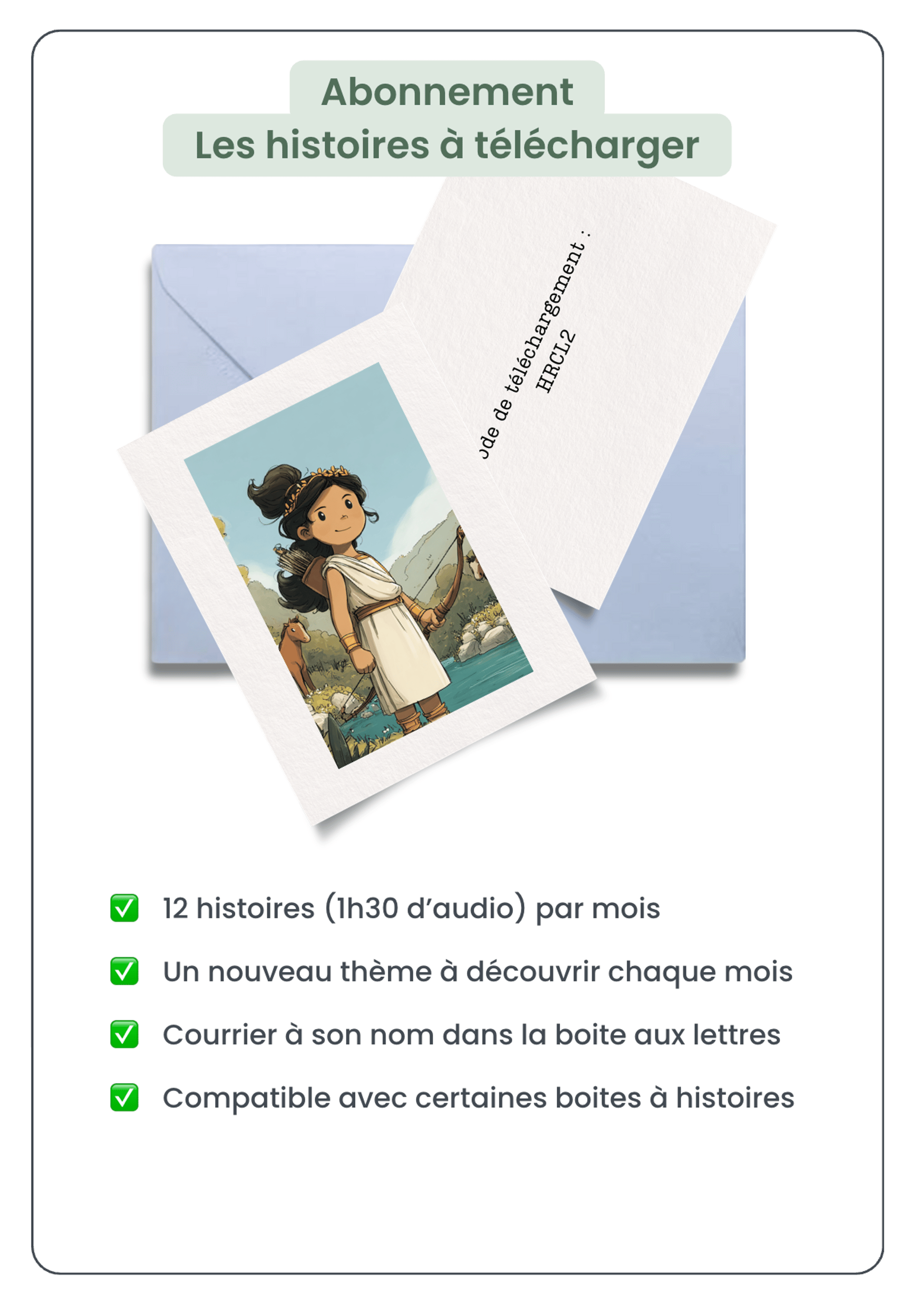 2 cartes à histoires + 1 code d’accès pour télécharger les audios