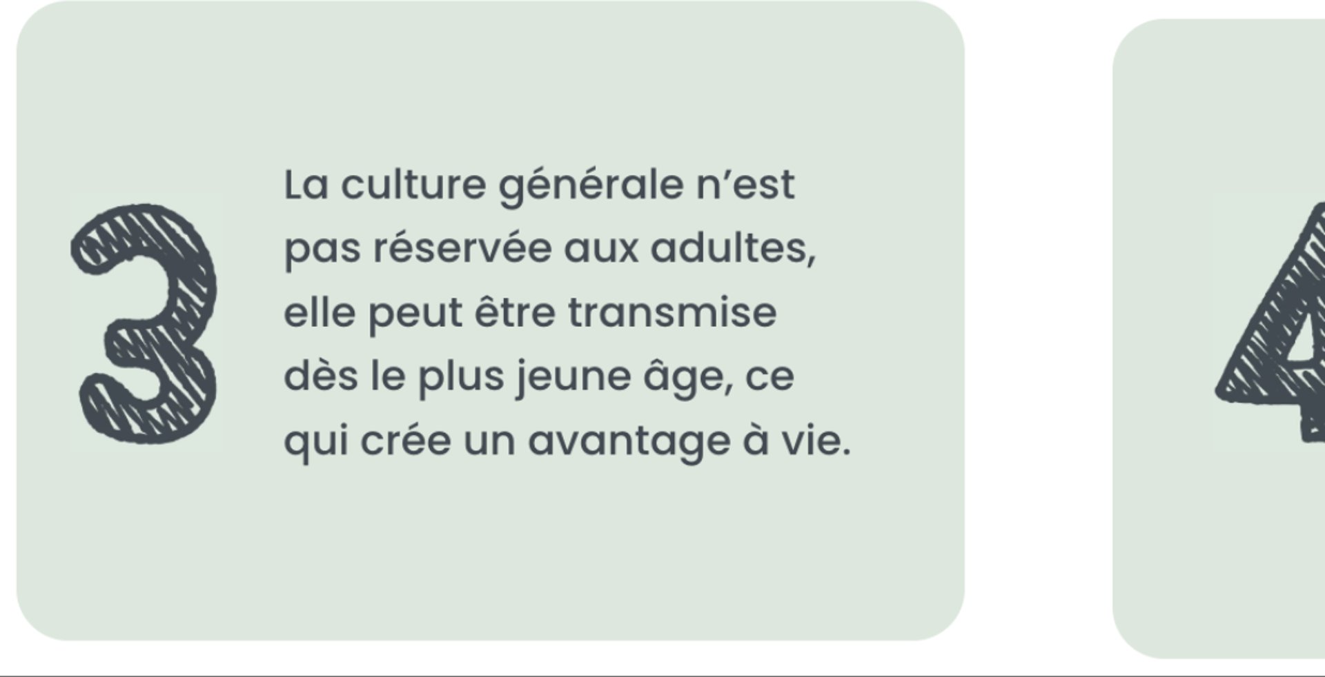 La culture générale n’est pas réservée aux adultes, elle peut être transmise dès le plus jeune âge, ce qui crée un avantage à vie.